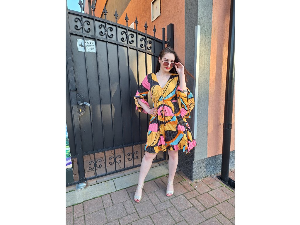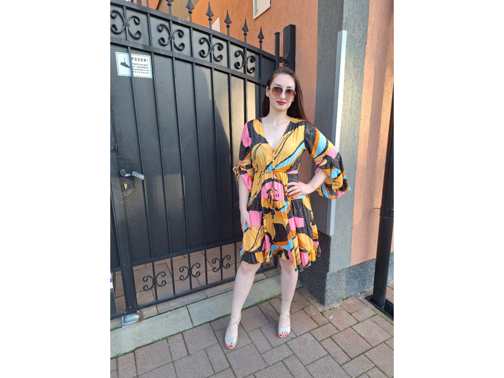 MATERIÁL : 70% Silk, 20% Viscoze, 10% PolyesterROZMERY : Hrudník : 100 - 108 cmPás: 66 - 86 cmBoky : do 120 cmDĺžka : 96 cm